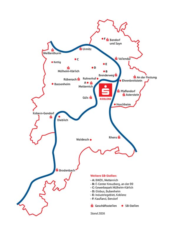 Geschäftsgebiet der Sparkasse Koblenz