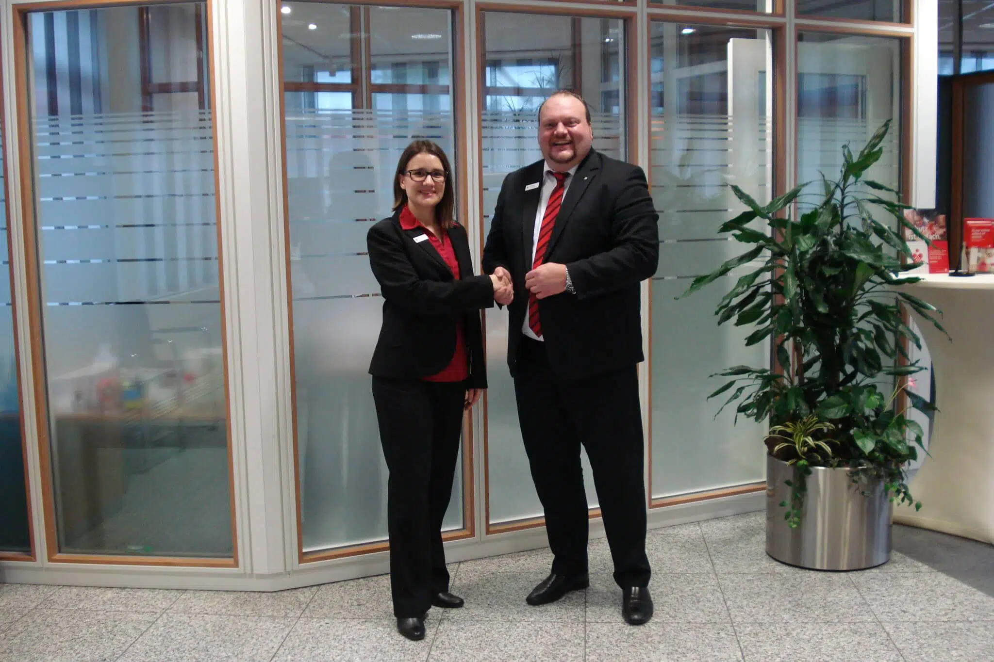 Ab 1. Januar 2018 ist Jennifer Hürter wieder Geschäftsstellen-Leiterin der Sparkasse Kesselheim. Sie übernimmt die Leitungsposition von Thorsten Schneider. Der Bankbetriebswirt war seit April 2016 für die Geschäftsstelle verantwortlich. Thorsten Schneider wird ab Februar 2018 die Geschäftsstelle Rauental leiten.